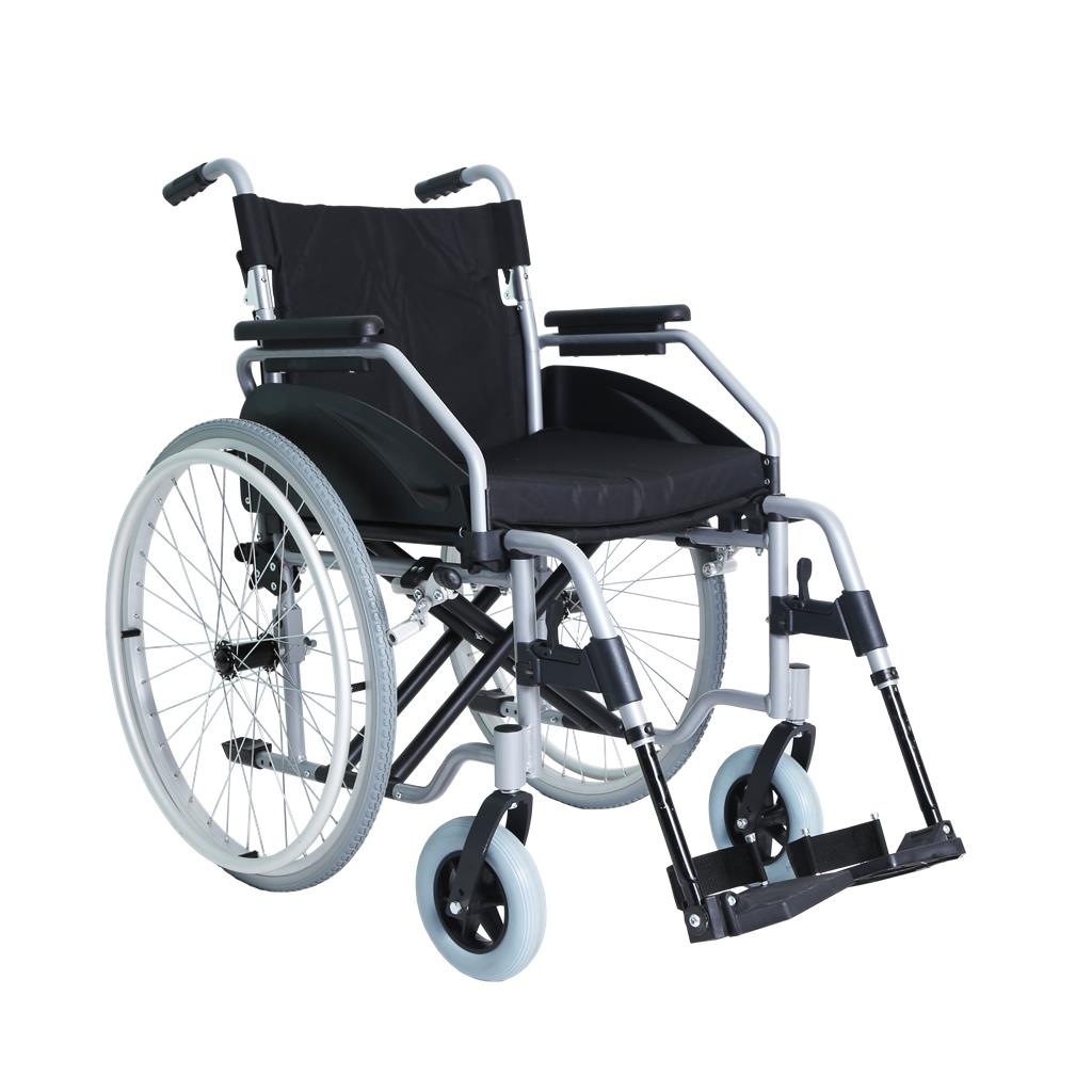 • Rodas traseiras 24" com aro de propulsão em alumínio, pneus antifuro em PU e rolamentos blindados;