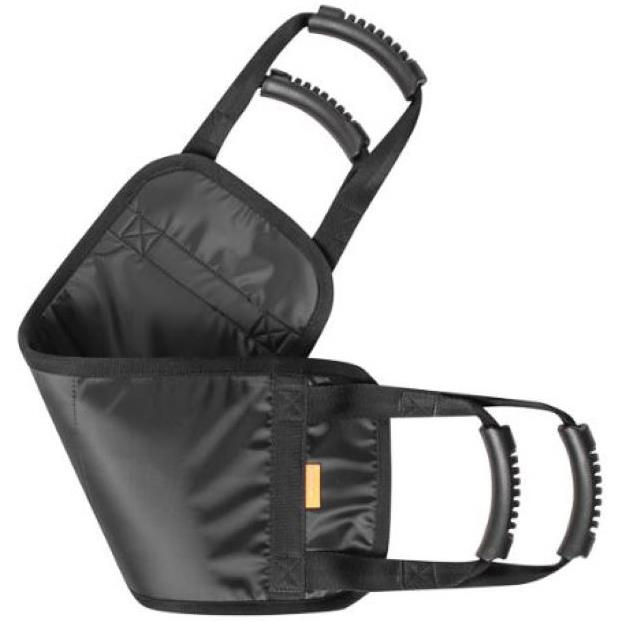 Posicione o cinto na região onde deseja movimentar (ombros, quadris, joelhos), passando por baixo do corpo do paciente. Puxe cuidadosamente através dos pegadores até a posição desejada.