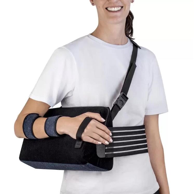 Promove o posicionamento do ombro em um ângulo de 30° para casos de pós-operatórios de lesões no membro superior. O recurso possui design ergonômico com sistema de fixação ajustável para o antebraço, permitindo que, quando necessário, o usuário mova o cotovelo, punho e mão sem comprometer a estabilização do ombro. Além disso, a fixação do antebraço é feita através de tiras, o que reduz a percepção de calor do usuário. A almofada de abdução (coxim) contém capa lavável, é leve e tem formato anatômico para oferecer conforto. O produto é bilateral, podendo ser usado no braço direito ou esquerdo, e parte de sua confecção é feita com tecido reciclado.